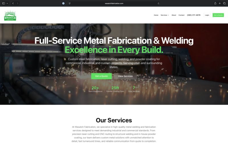 I helped the team at Wasatch Fabrication build a custom website for their new business. The site provides info about their services and allows potential customers to get a quote. We built out an admin area to allow the team to manage the content and the quotes.